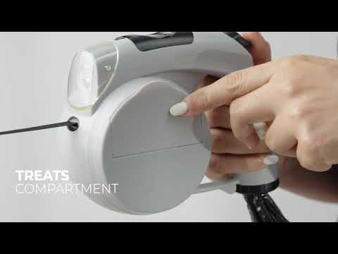 - Kaikki yhdessä paketissa: Taluttimessa on integroituna vesisäiliö, herkkulokero, kakkapussiannostelija sekä kätevä kokoontaitettava vesikippo.