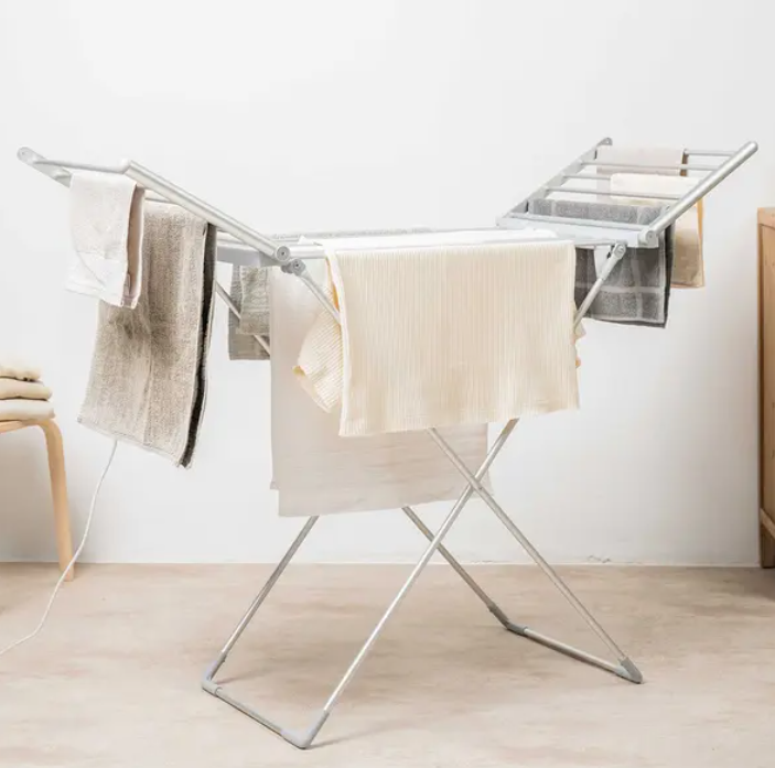 Tämä sähkökäyttöinen kuivausteline on moderni ja energiatehokas vaihtoehto kuivausrummulle, ja se tuo ripauksen luksusta ja helppoutta jokaiseen pyykkipäivään!