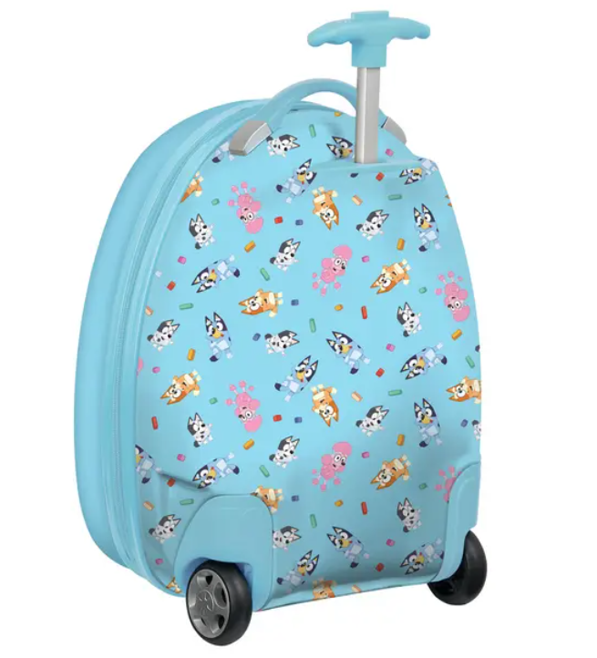 - Design: Matkalaukun etupuolta koristaa iloinen 3D-muotoiltu Bluey-hahmo, joka tuo matkalle tuttua turvaa ja riemua.